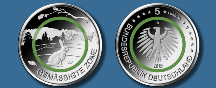Die Bundesregierung hat beschlossen, eine 5-Euro-Sammlermünze „Gemässigte Zone“ mit einem grünen Kunststoffring prägen zu lassen und am 19. September 2019 auszugeben.