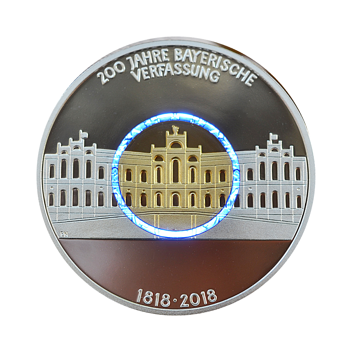 Gedenkprägung anlässlich des Bayerischen Jubiläumsjahrs 2018, in dem wir den runden Geburtstag zweier historischer Ereignisse feiern durften.
