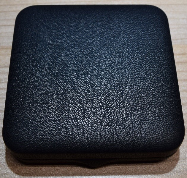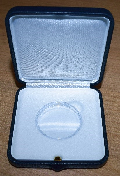 Black imitation leather case with white inlay for medals with 40mm diameter.