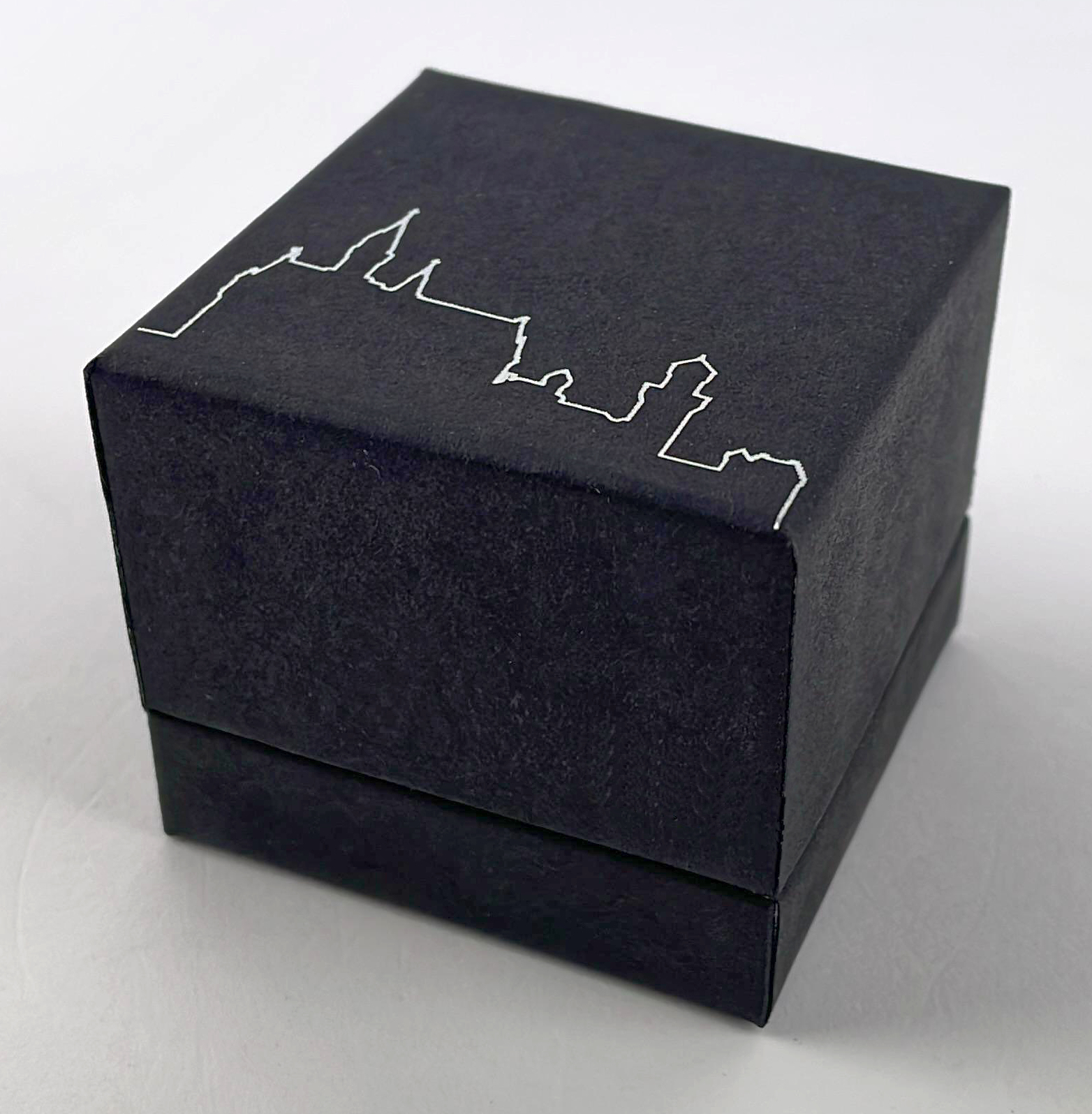 Schwarzes Etui mit silberner Silhouette des Schlosses Neuschwanstein.